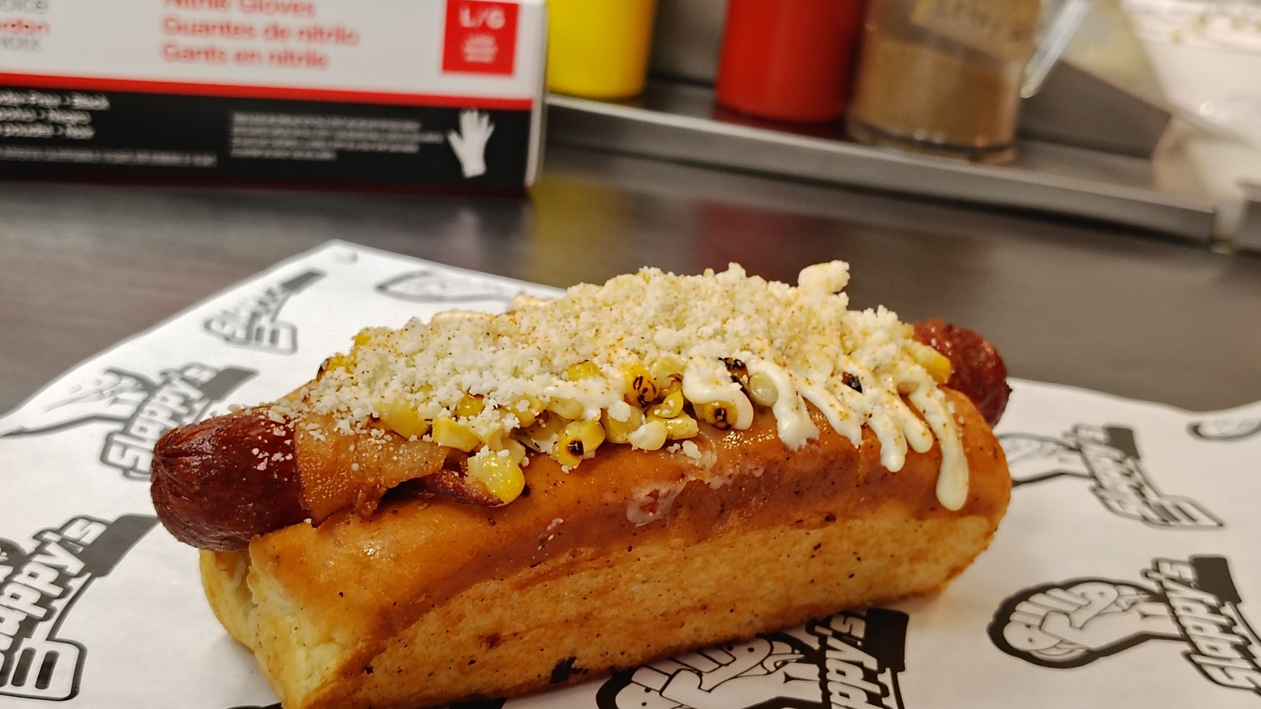 Reminiscent of the windy city classic, a 1/4 pound Angus beef hot dog, served on a grilled poppy seed bun.
